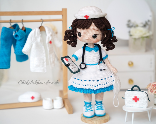 Crochet Doctor & Nurse Doll Pattern, HELEN Amigurumi Doll PDF Tutorial (En/Fr/De/Esp/Nl/It)